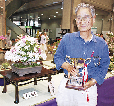 井上さんは長年さつきを育てている愛好家。今回の受賞作は4年ほど前に購入したさつきに、剪定・水やり等の作業を怠らず、丹精込めて育てた作品だ。受賞に対して井上さんは「さつきそのものの素質が良かった。人間と同じで健康に気を付けて手塩にかけて育ててきた作品。私自身も健康を維持して、いつまでも携わっていきたい」と語った。