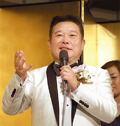 鈴木氏は「世界会長になるまで20年かかった。優秀な人材が豊富なため海老名の会長になるには30年かかりました」などと会場を盛り上げつつ、「家族をはじめ、日頃支えていただいているご出席された皆様に感謝します」とあいさつした。