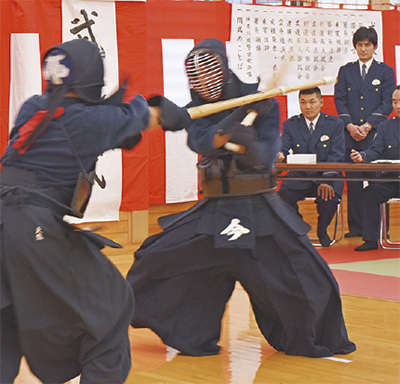 この日は、米川署長の「警察官はどんなことがあっても犯罪者に負けてはならない。体を鍛えてきた成果を見せて下さい」という訓示からスタート。署員は剣道・柔道の2種目で、敗れるまで連続して試合を行う「高点試合」と、県警高段者に挑む「五人掛試合」を行った。また、振り込め詐欺がテーマの逮捕術や、東京オリンピック強化選手らによる空手道など今年ならではの演武も披露された。