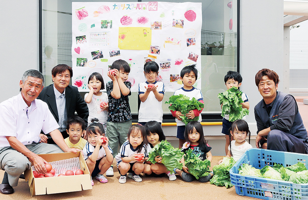 多くの人に地場野菜を知ってもらおうと毎年実施し、今年で25回目。今回は節目の記念事業として寄贈に先立ち園児対象の収穫体験も行われた。