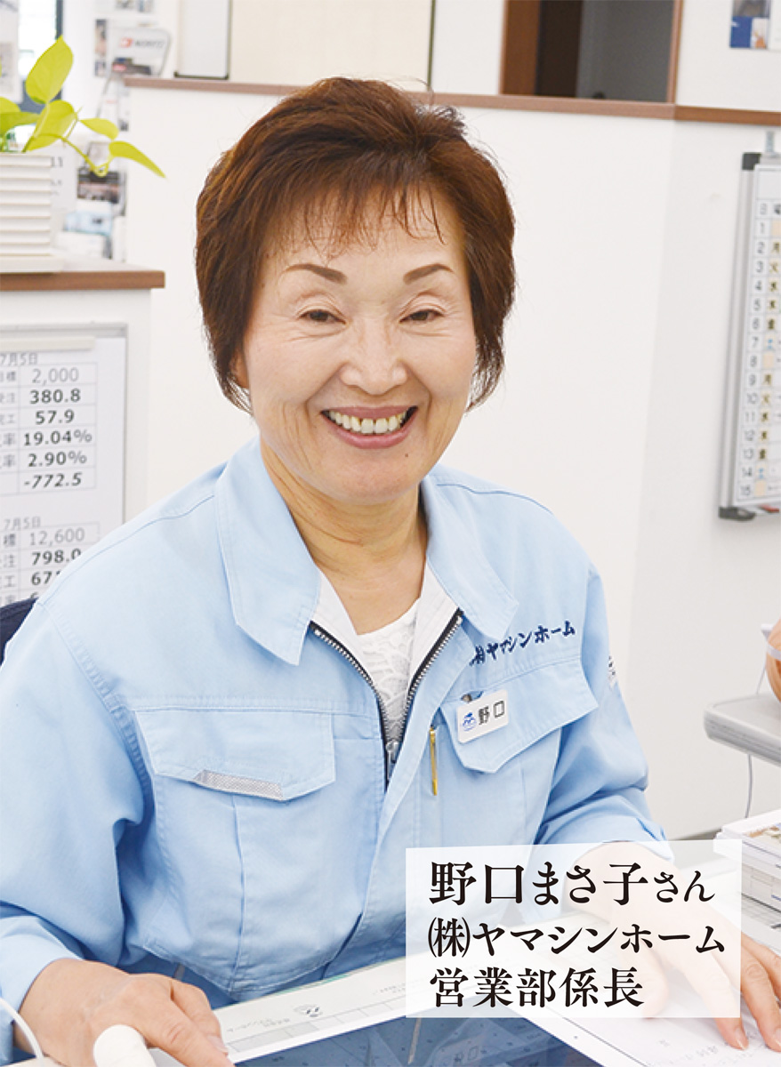 第1回は、海老名を始め県内に9店舗をもつ住宅リフォーム会社(株)ヤマシンホームのベテラン営業部係長・野口まさこさんにインタビューしました。