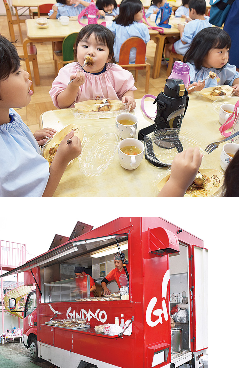 当日は銀だこカーが登場し、職人がその場で320食を焼き上げた。園児たちは、保育士が「これほど食べるとは」と驚くほどの食べっぷりで、おいしそうに平らげた。