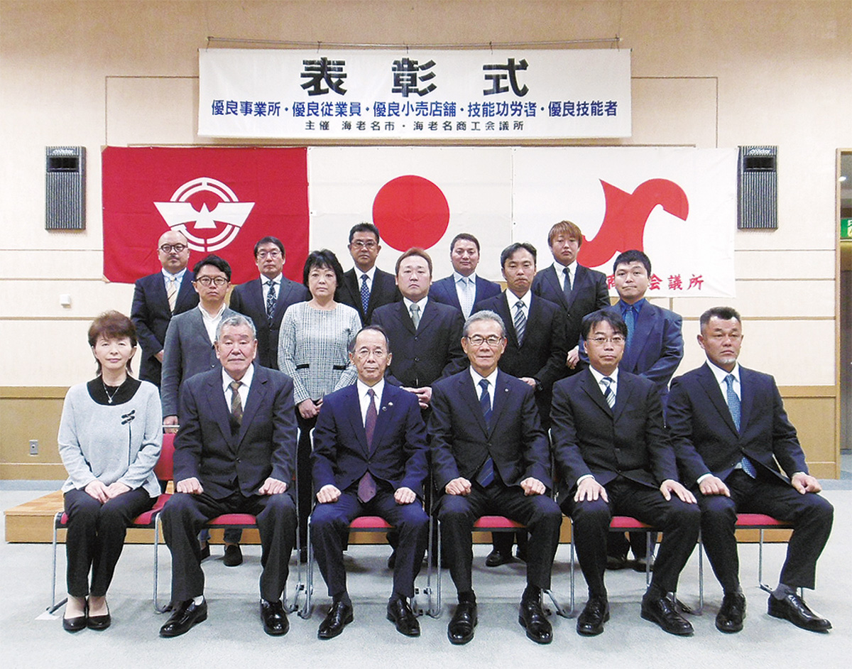 市内で働く優良従業員や事業所などを表彰する「平成30年度 商工・労働部門表彰式」が、海老名市役所で11月21日に開催され、受賞者には内野優市長や海老名商工会議所の三田佳美会頭から賞状が授与された。今年は優良従業員6人、優良事業所5社、技能功労者2人、優良技能者2人、優良小売店舗5社が選ばれた。
