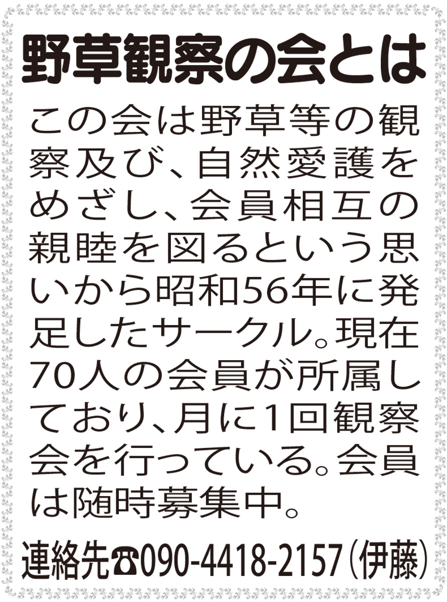 このコーナーでは、海老名市を拠点に活動するサークル「野草観察の会」が、市内に咲く四季折々の植物を紹介します。