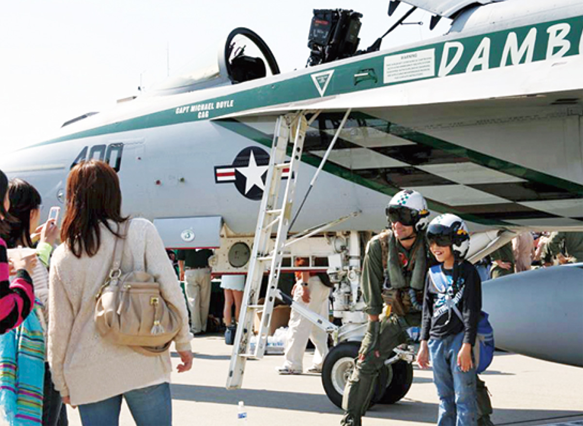 当日は米海軍・海上自衛隊航空機地上展示=写真=や、ライブコンサート、飲食ブース、米海軍・海上自衛隊グッズ販売、NAF厚木茶道クラブによる野点が行われる。