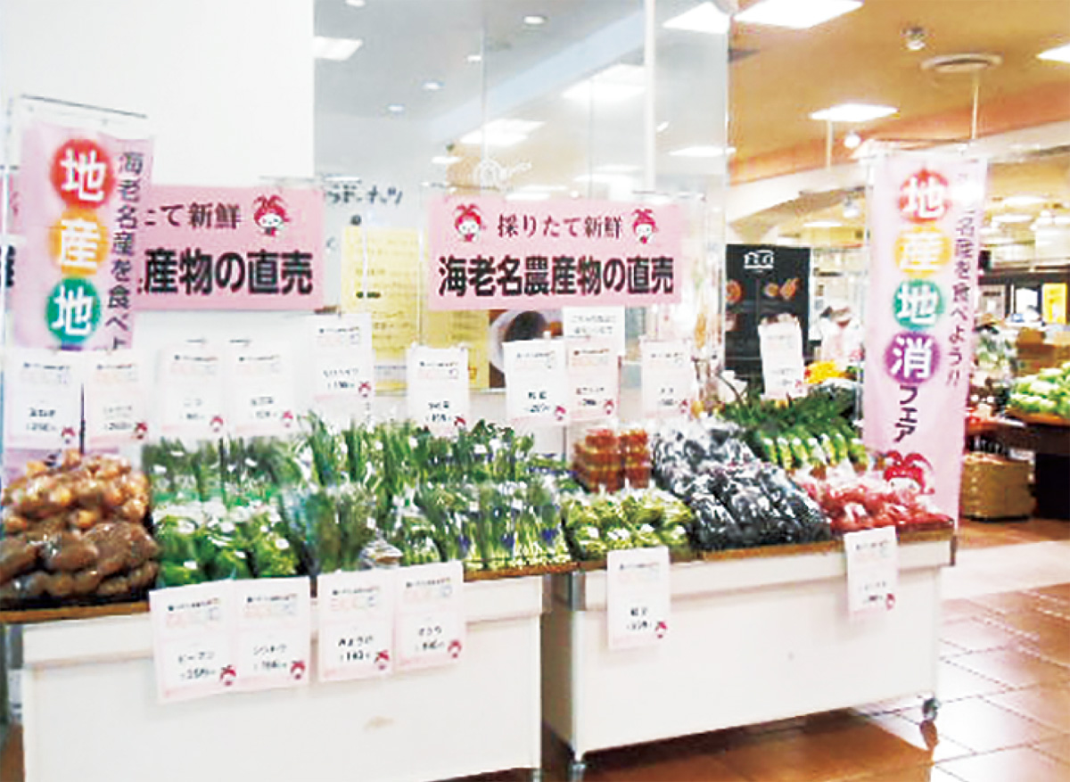 この催しは海老名の農産物を多くの人に親しんでもらおうと、海老名市大型店連絡協議会(尾崎秀樹会長)と海老名市地産地消推進実行委員会(塩脇和男委員長)が「農商連携」を図って実施するもの。2017年度から夏と冬に行われている。