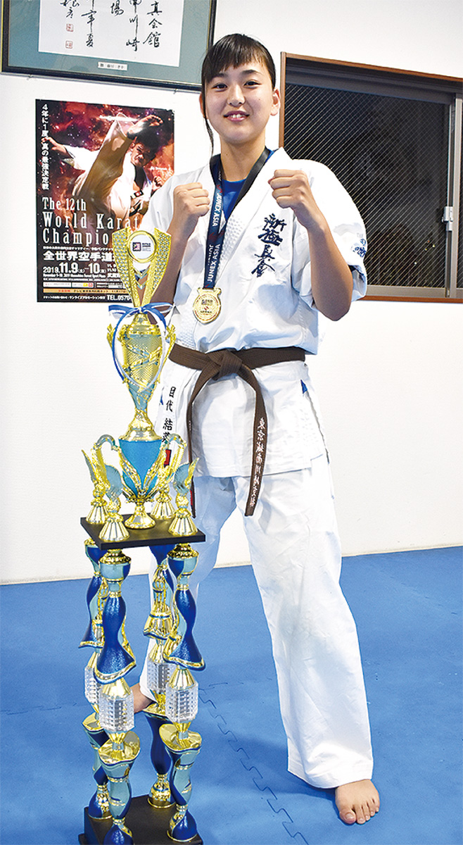 目代さんは「追い込み期間が長く辛かったが当日、気持ちの切り替えができたことで自分の組手ができた。自身の成長を感じた」と振り返った。