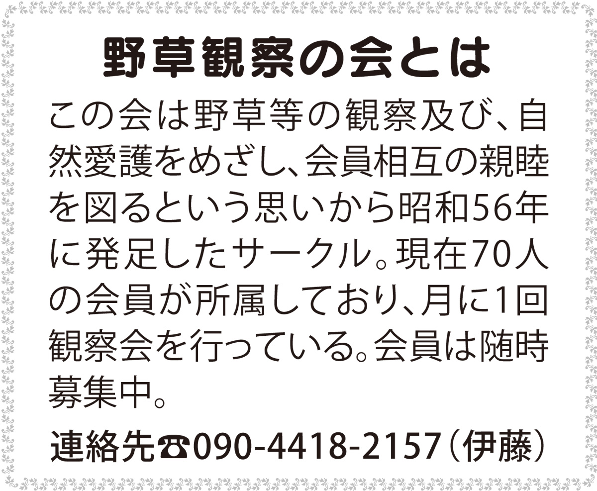 このコーナーでは、海老名市を拠点に活動するサークル「野草観察の会」が、市内に咲く四季折々の植物を紹介します。