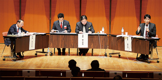 この日は経済評論家の池田健三郎氏がコーディネーターを務め、2人は自身の重点政策を語ったほか、「安心・安全」や「教育」「産業経済」などをテーマにした質問に答えた。参加者の一人は「資料だけでは分からない部分もあるので、お互いの主張が聞けてよかった」と話していた。