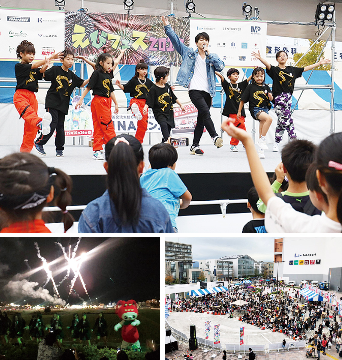 この日は、地元ダンスチームによるショーや相州海老名東柏太鼓の演奏などが披露され会場を盛り上げたほか、市親善交流大使で「DA PUMP」のメンバー・KENZO氏が登場し、同氏監修のEBINAダンスをレクチャー。フィナーレには花火が打ち上げられ、秋の夜空を彩った。