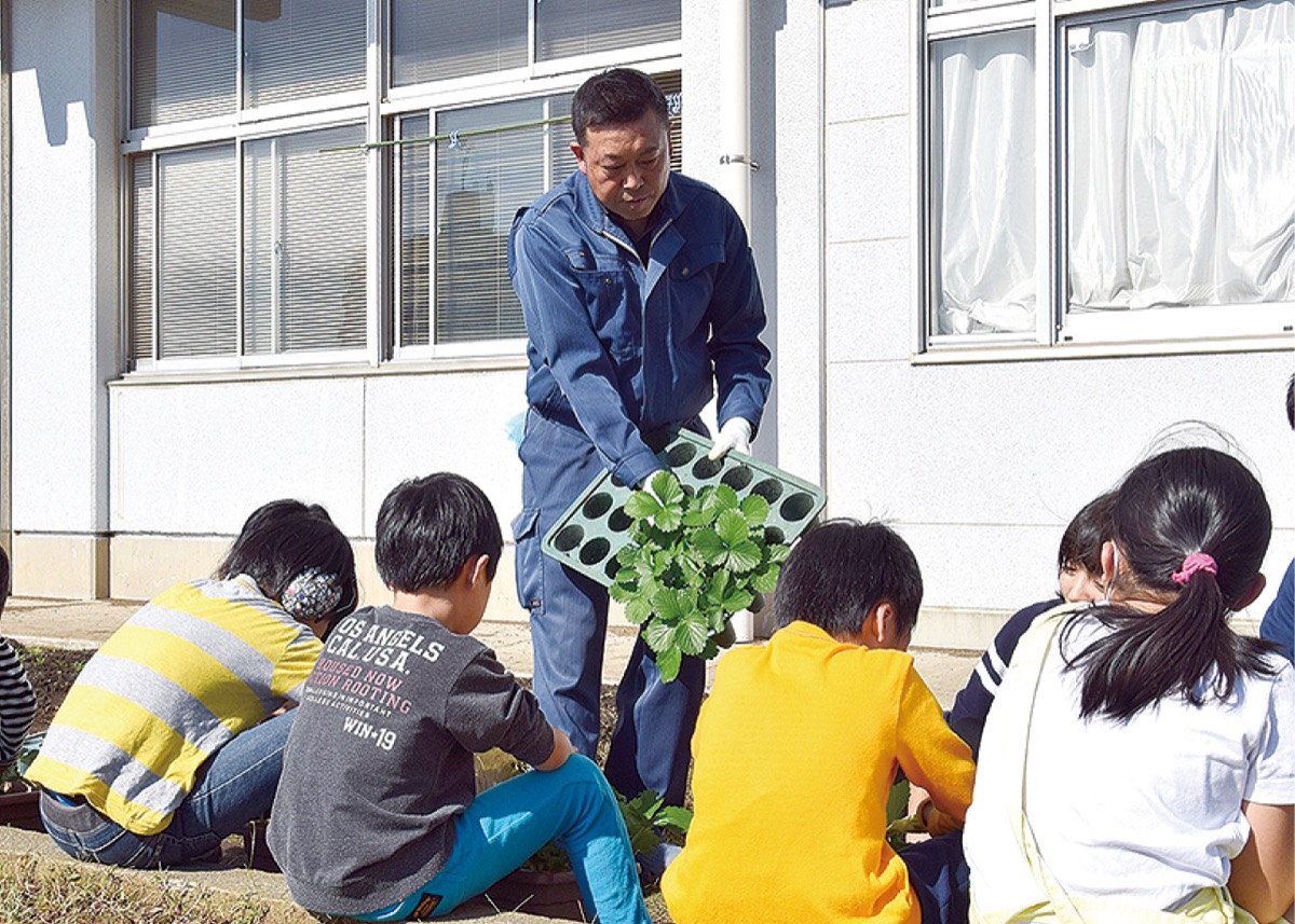 部会員が10月初旬から順次各学校を回り、計300本の苗を無償で提供した。門沢橋小学校では、市内本郷の生産者・武井哲也さんが児童や教職員にイチゴについて説明した後、植え付け指導も行った。