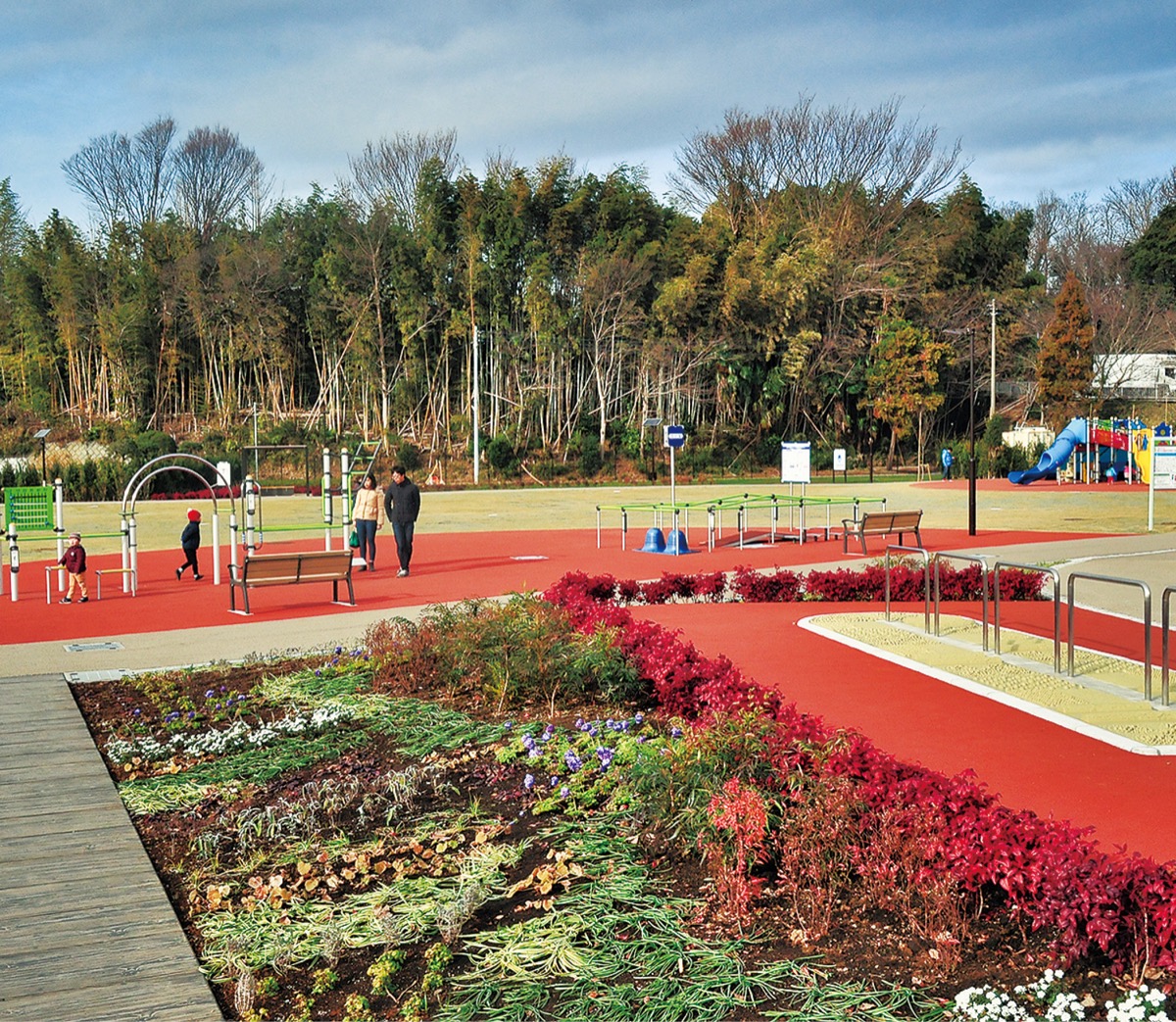 同公園は昨年4月に稼働したごみ処理施設「高座クリーンセンター」の建設に伴い、近隣住民から「周辺整備として市民に親しまれる公園を作って欲しい」という要望のもと設置されたもの。住民と協議を重ね、豊かな自然環境を生かしながら「広域避難場所」としての機能も併せ持つ施設として建設された。