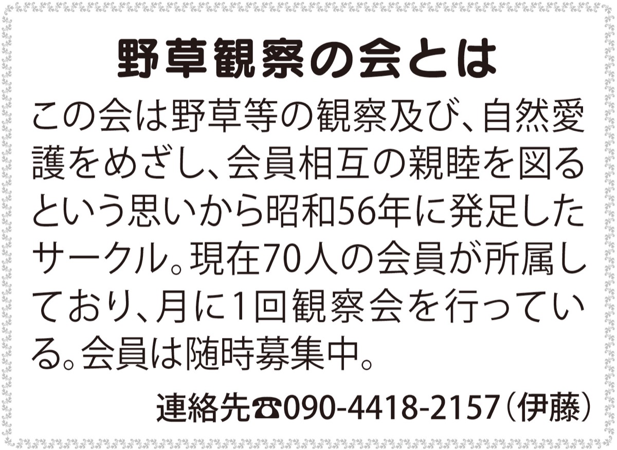 このコーナーでは、海老名市を拠点に活動するサークル「野草観察の会」が、市内に咲く四季折々の植物を紹介します。
