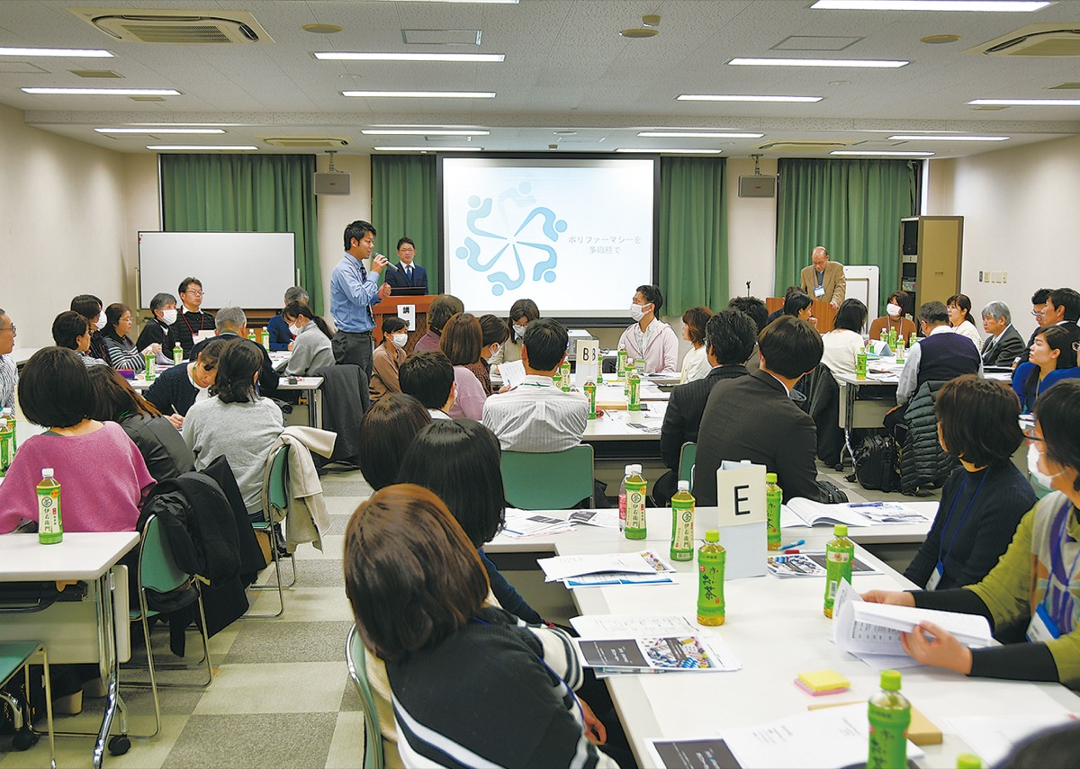 今年で4回目となる研修会でははじめに、ガーデン薬局の経営者で薬剤師の小林弘忠氏と海老名総合病院総合診療科の日比野壮功氏が「ポリファーマシー」について講演。東海大学付属大磯病院の医師、高橋浩雄氏が示したテーマ「ポリファーマシー・腎不全の場合」に沿って複数の症例を題材に10人1組のグループで討論を進めた。