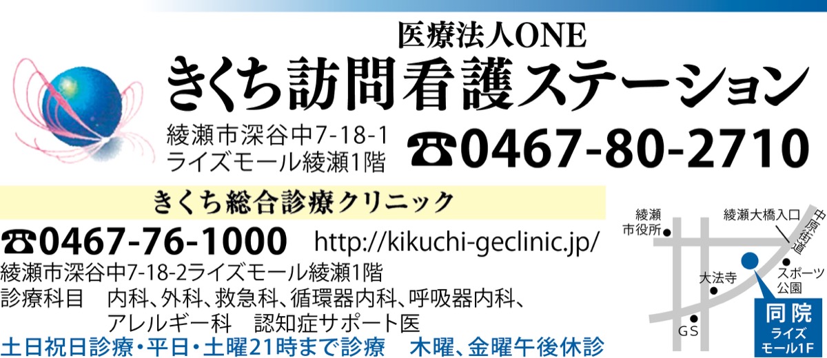 「病気を診て、人を診て、一人でも多くの命をやさしく包み込む医療を提供したい」。綾瀬市深谷中、ライズモール綾瀬1階の「医療法人ONE・きくち総合診療クリニック」(菊池大和院長)が、4月から「きくち訪問看護ステーション」を開設する。