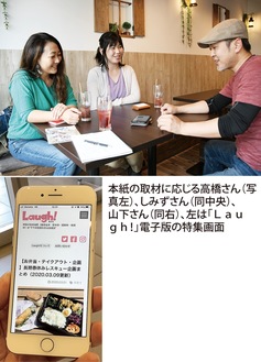 ママ向けの季刊情報誌「Laugh!(ラフ)」の電子版が、新型コロナウイルスによる学校の臨時休校を受けて独自のサービスに取り組む店の紹介を始めた。給食中止と休校の長期化も視野に入れ「お弁当・テイクアウト」を中心に地域の店を紹介している。