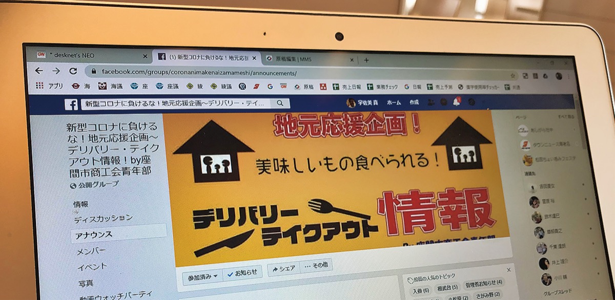 座間市商工会青年部(木村大輔部長)が3日、同市内の飲食店が提供する持ち帰り商品を紹介する「新型コロナに負けるな!地元応援企画〜デリバリー・テイクアウト情報!by座間市商工会青年部」をフェイスブック内のグループに立ち上げた。フェイスブックのアカウントがあれば誰でも閲覧でき、投稿もできる。
