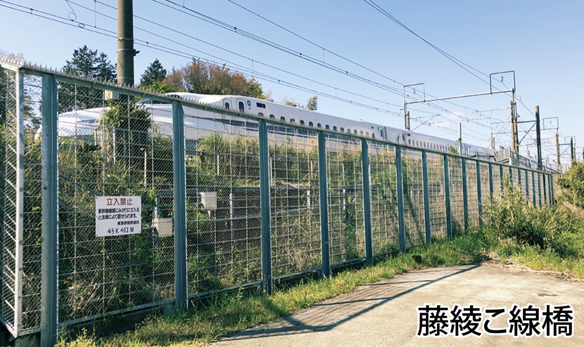 高さ1・6m「藤綾こ線橋」は頭上を新幹線が通るニッチな場所。低い。近い。新幹線を待ちつつ休息。1964年開通の東海道新幹線の試験線は、綾瀬と小田原市鴨宮を結んでいた。