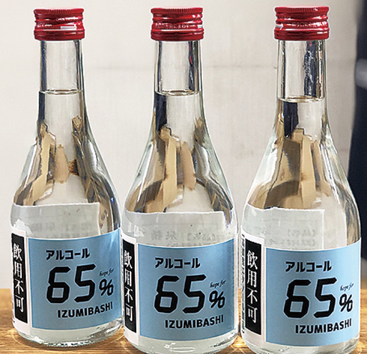 新型コロナウイルスの影響で消毒用アルコールが入手困難な状況が続いている。そんななか海老名市下今泉の泉橋酒造(橋場友一社長)がアルコール度数65度の高濃度エタノール製品を製造し、25日に販売を開始した。300ミリリットル1100円(税込)、飲用不可。