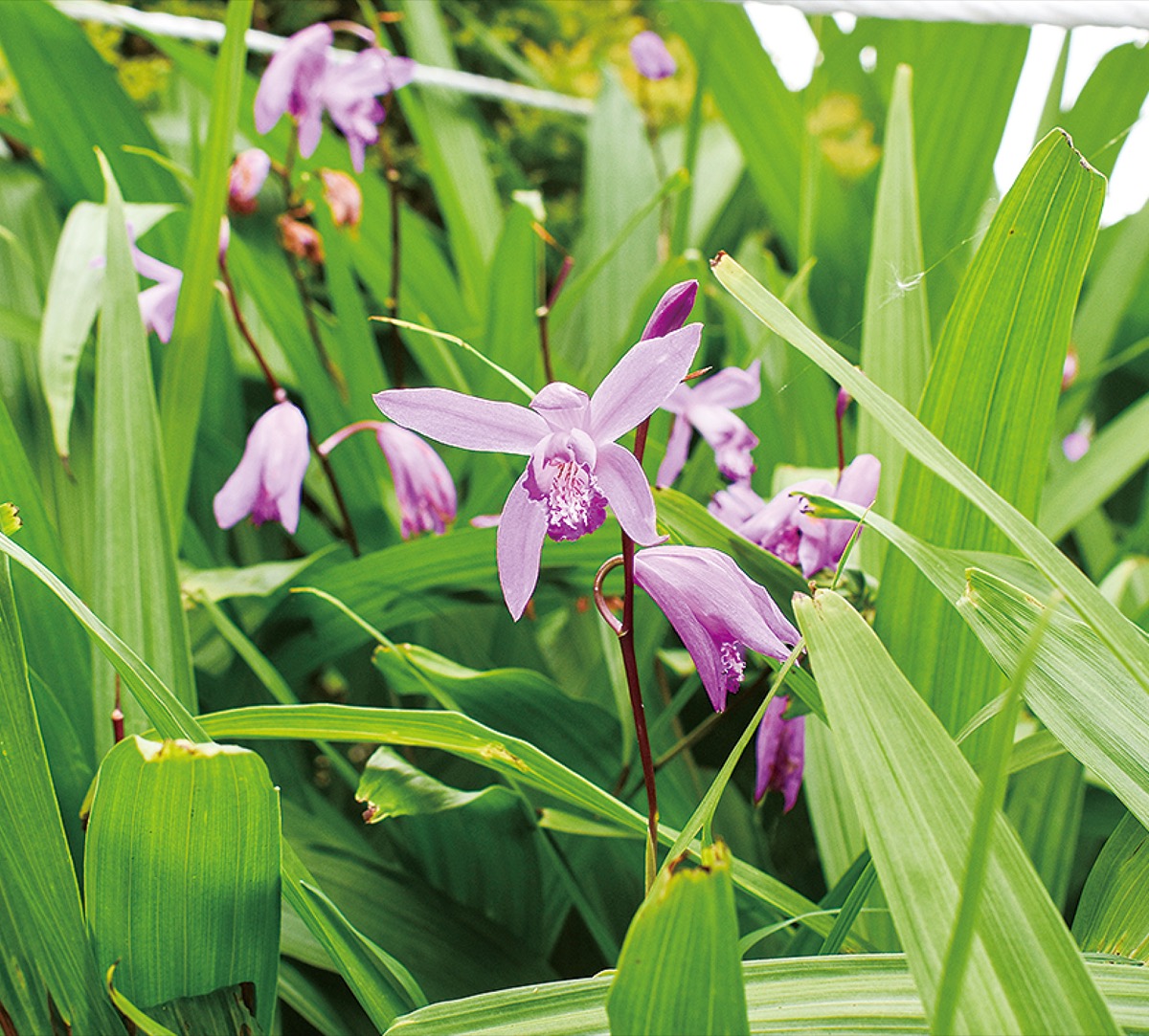 シランは4月下旬から5月上旬に見どころとなるラン科の植物。ここ最近の気温が低かったこともあり、6月初旬ごろまで紫色の小ぶりな花が楽しめる。
