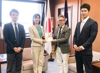 相模原南不動産事業協同組合(大場直理事長)は5日、座間市役所を訪問し、佐藤弥斗市長に「新型コロナウィルス感染対策支援寄付金」を手渡した。