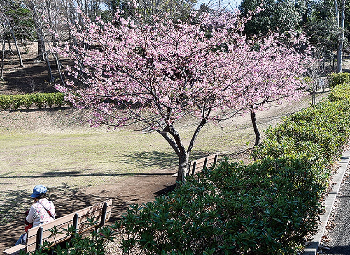綾瀬市の小園公園で地域の人たちが植えたおよそ20本の河津桜が見ごろを迎えている。