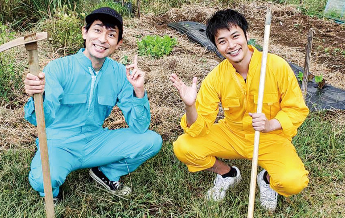 海老名市出身の俳優、篠田光亮さん(40)と鷲尾昇さん(44)が、昨年10月に同市河原口の民間農園でファンコミュニティ「ボク農ファーム」を立ち上げ、農作業やファンとの交流をSNSや有料動画サイトで発信している。