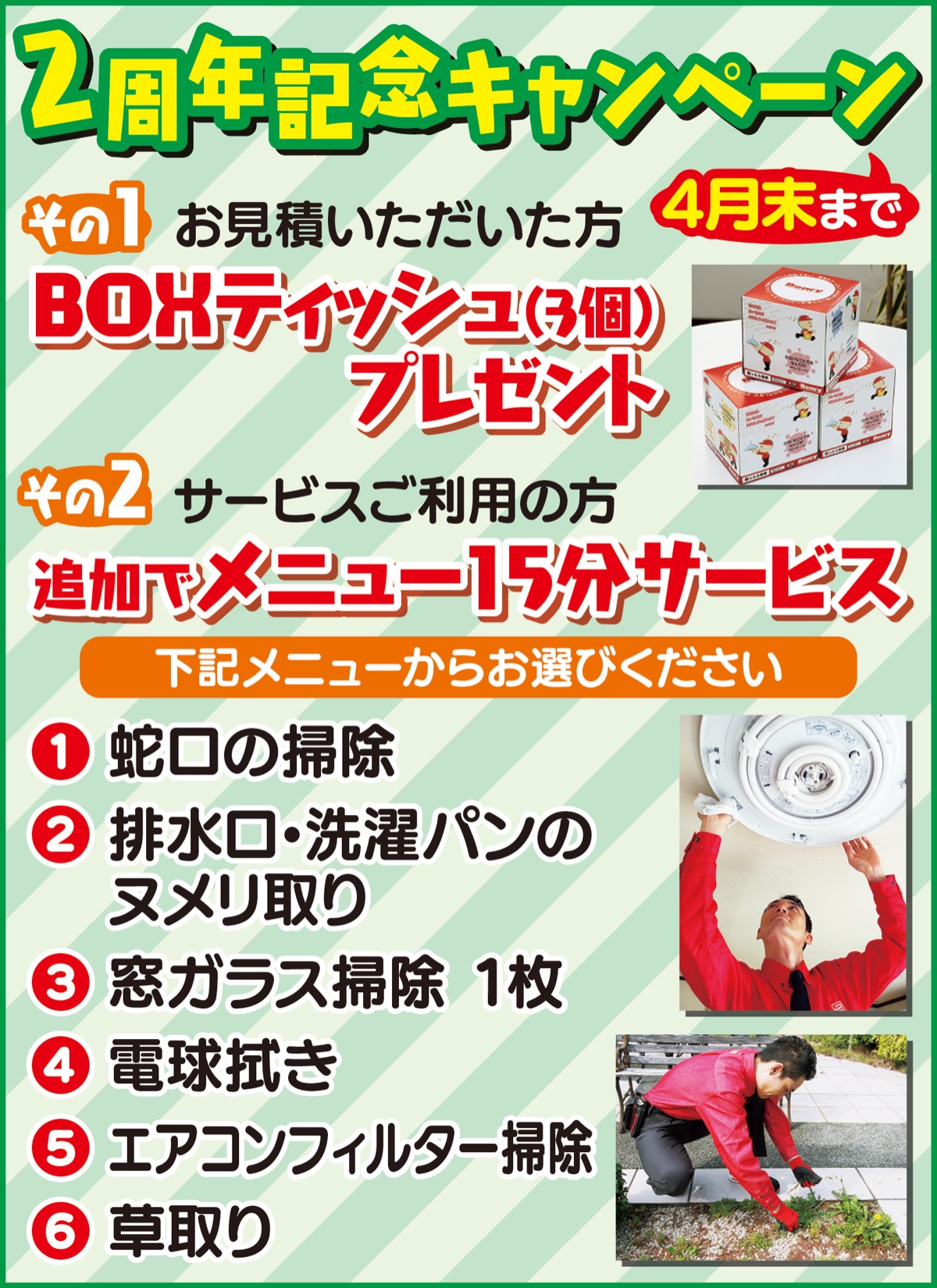 新年度を迎えたこの季節、ハウスクリーニングやちょっとした家具移動が人気。また常緑樹は春先の暖かい時期の剪定がおすすめ。手早く丁寧に作業してくれる。