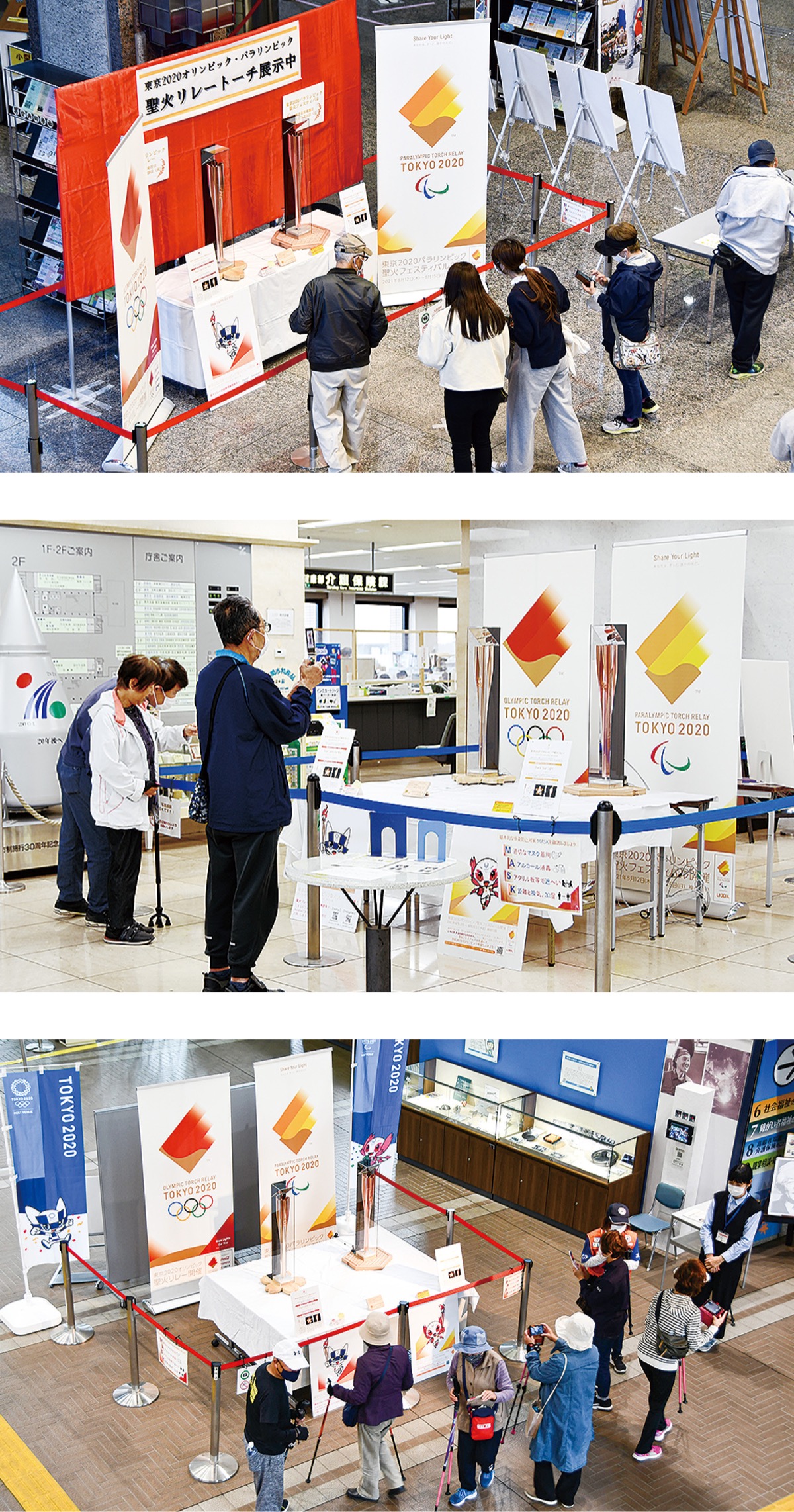 オリンピックとパラリンピックの聖火リレートーチの巡回展は、4月1日からの平塚市役所を皮切りに、県内29カ所で行われ、1〜3日間の日程で6月24日まで県内各地を巡る。