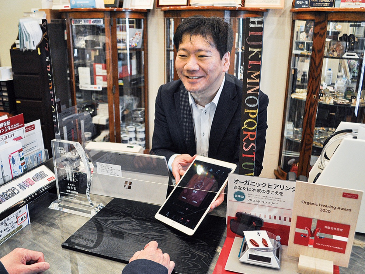 販売する前に約2カ月間の調整期間を設ける補聴器の堺堂。型破りな販売方法と手厚いサービスが好評で、全国から申し込みが殺到している。同店では、新型コロナ対策として「リモート調整」を導入。希望者にはタブレットのレンタルも行っている。