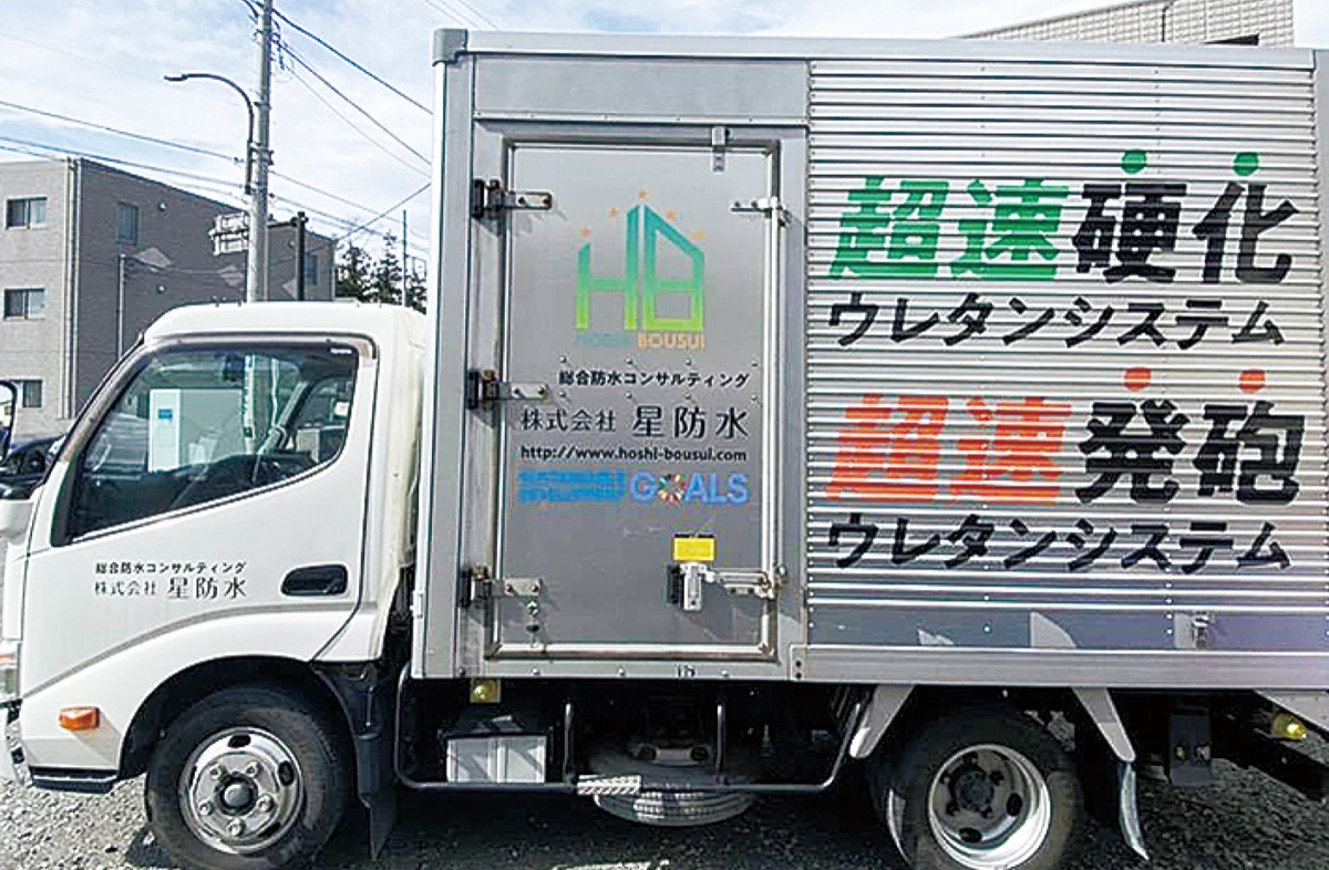 同社は県内でも早い時期から、次世代向けの工法「超速硬化ウレタン吹付けシステム」を導入=写真下。工期の短縮や人手不足の解消に取り組んできた。その結果、環境対応型ウレタン防水材の拡販に貢献したとして、環境対策を表彰するZero―1貢献賞の金賞などを4年連続で受賞している。
