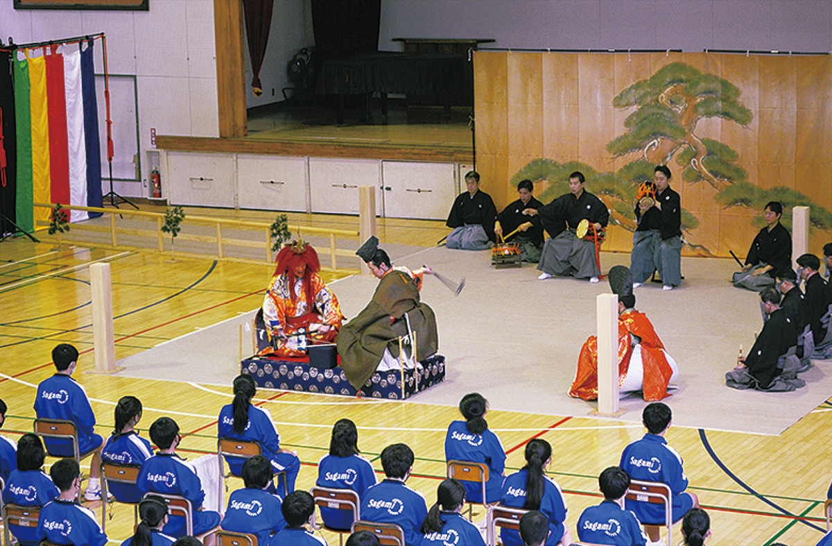 座間市立相模中学校(金子憲勝校長)で7月6日、文化庁主催の文化事業として、3年生179人を対象に能と狂言の鑑賞教室が行われた。