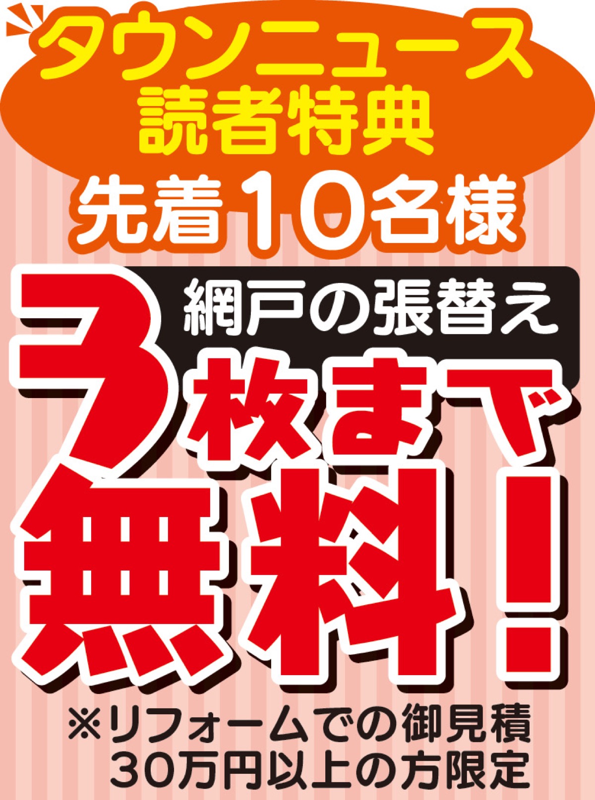 ご成約で先着10名様「網戸の張替え3枚」無料!