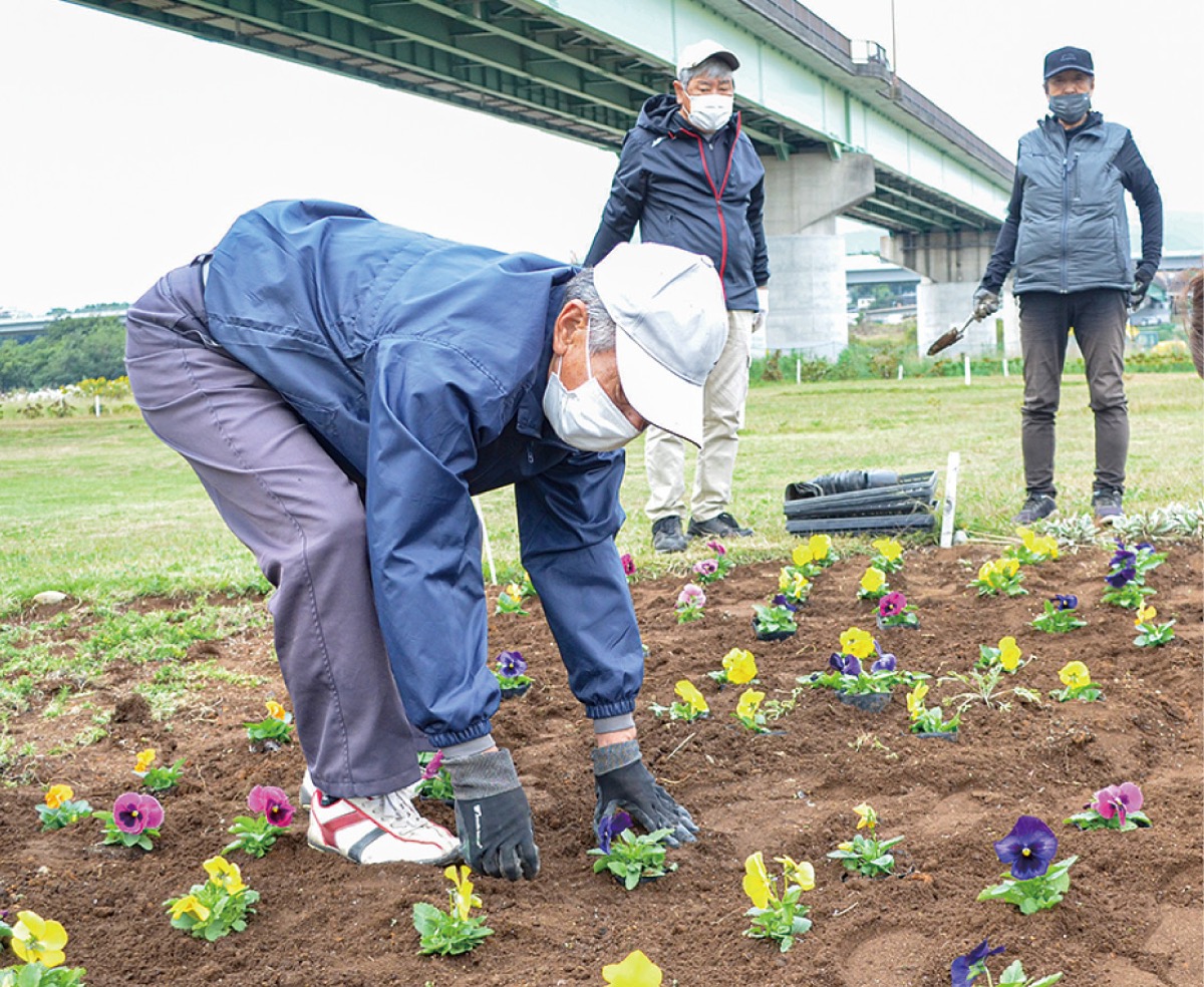 復旧を検討するなかで、設備を刷新することを決定。排水管を切ってホールカップとしていたところを専用のカップに変更し、芝生の範囲も1・5倍に拡大させた。資金は積立金のほか寄付金を募り調達した。野島会長は「他に見劣りしないコースにしたいと一致団結して実現できた」と自信をみせる。特徴的な花壇は寺岡武夫副会長=人物風土記が中心となって整備を行っている。