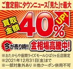 南林間駅からバス5分のライズモール座間ひばりが丘2階の「おたからや」では現在、査定前に「タウンニュース見た」で査定40%アップ企画を開催中。2点以上の買取で1万円もプレゼント。