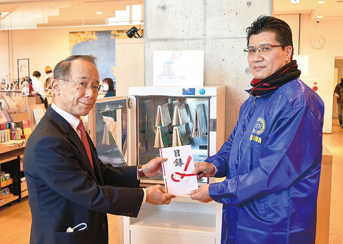 海老名ロータリークラブ(見方雅教会長)がこのほど、市立中央図書館に除菌・消臭・ゴミ除去機能を備えた書籍消毒器を寄贈した。