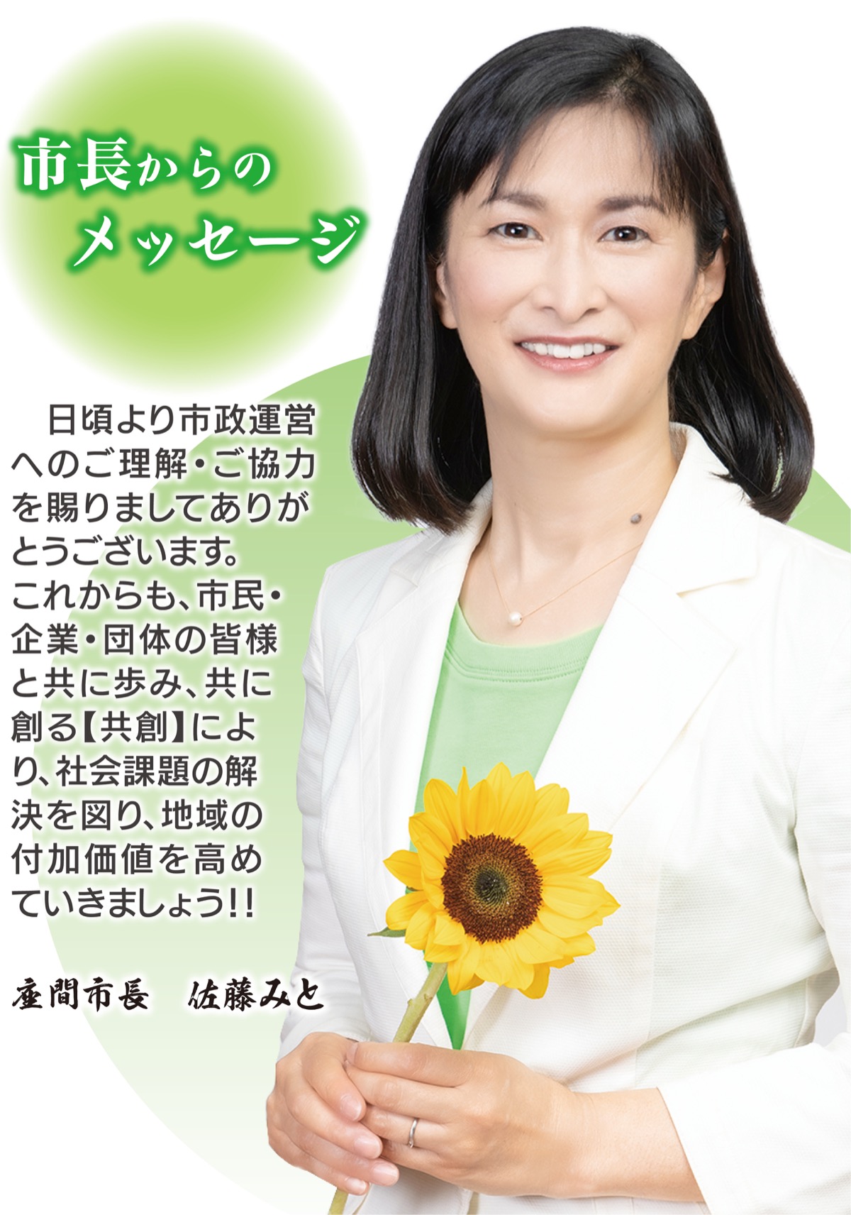 日頃より市政運営へのご理解・ご協力を賜りましてありがとうございます。これからも、市民・企業・団体の皆様と共に歩み、共に創る【共創】により、社会課題の解決を図り、地域の付加価値を高めていきましょう!!