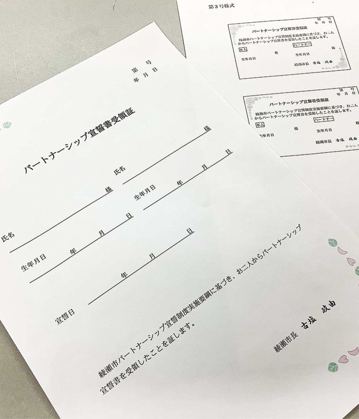綾瀬市では、同性婚のほか、諸事情で婚姻届けが提出できない事実婚のパートナーにもこの制度を適用する。