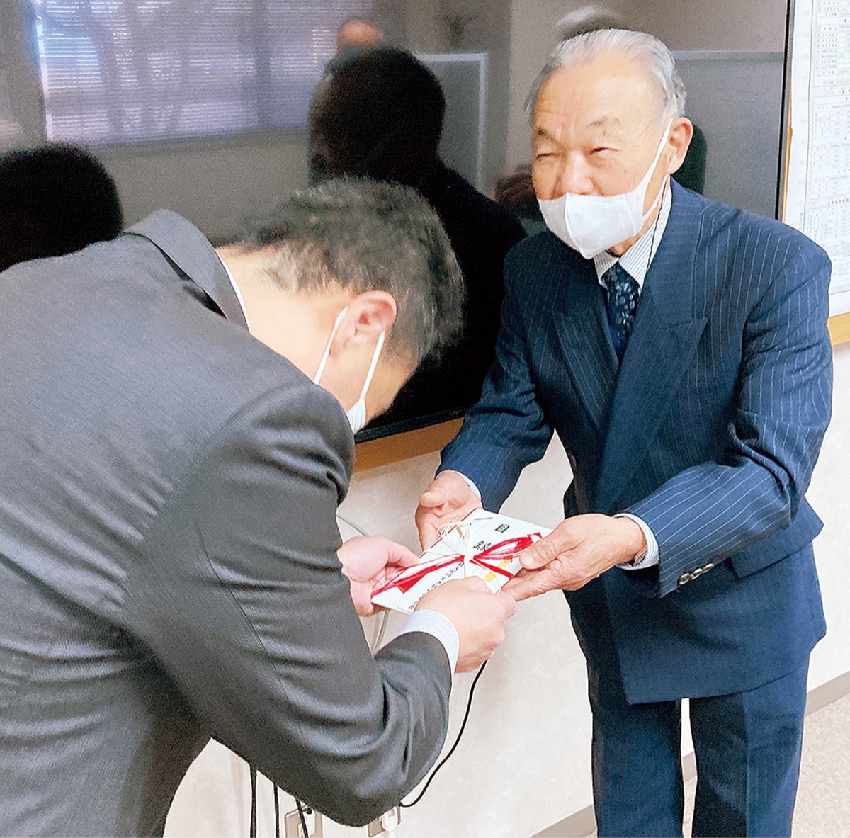 飯田さんは「我々の感謝の気持ちとして受け取ってほしい。会は解散したが、今後も個人としてできることはしていきたい」と話した。星名所長は「長い間、河川の環境整備を快く受けていただき感謝している。河川の管理には地元の協力が必要なので、今後も地域連携のために力を貸してほしい」と話した。