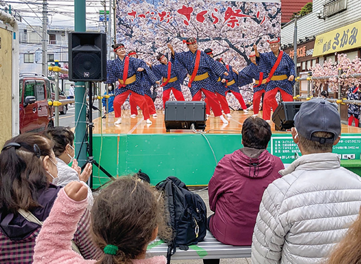 コロナ禍で2020年、21年は中止となったため3年ぶりの開催となった地域の春の一大イベント。今年は例年同様2週にわたって週末に開催されている。ステージでは和太鼓や舞踊、音楽バンドが次々と出演し観客を沸かせた。またグルメやアトラクションの屋台も並び多くの人が桜とともに楽しんでいた。