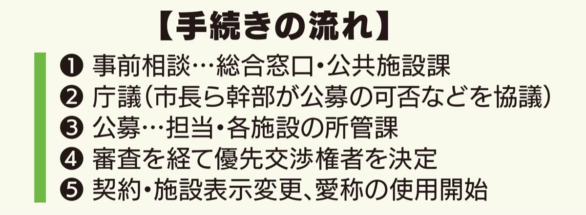 企業側には地域貢献によるイメージ向上や名称などを宣伝できるメリットがあり、市には自主財源の確保や施設の利用促進につながる効果が見込める。