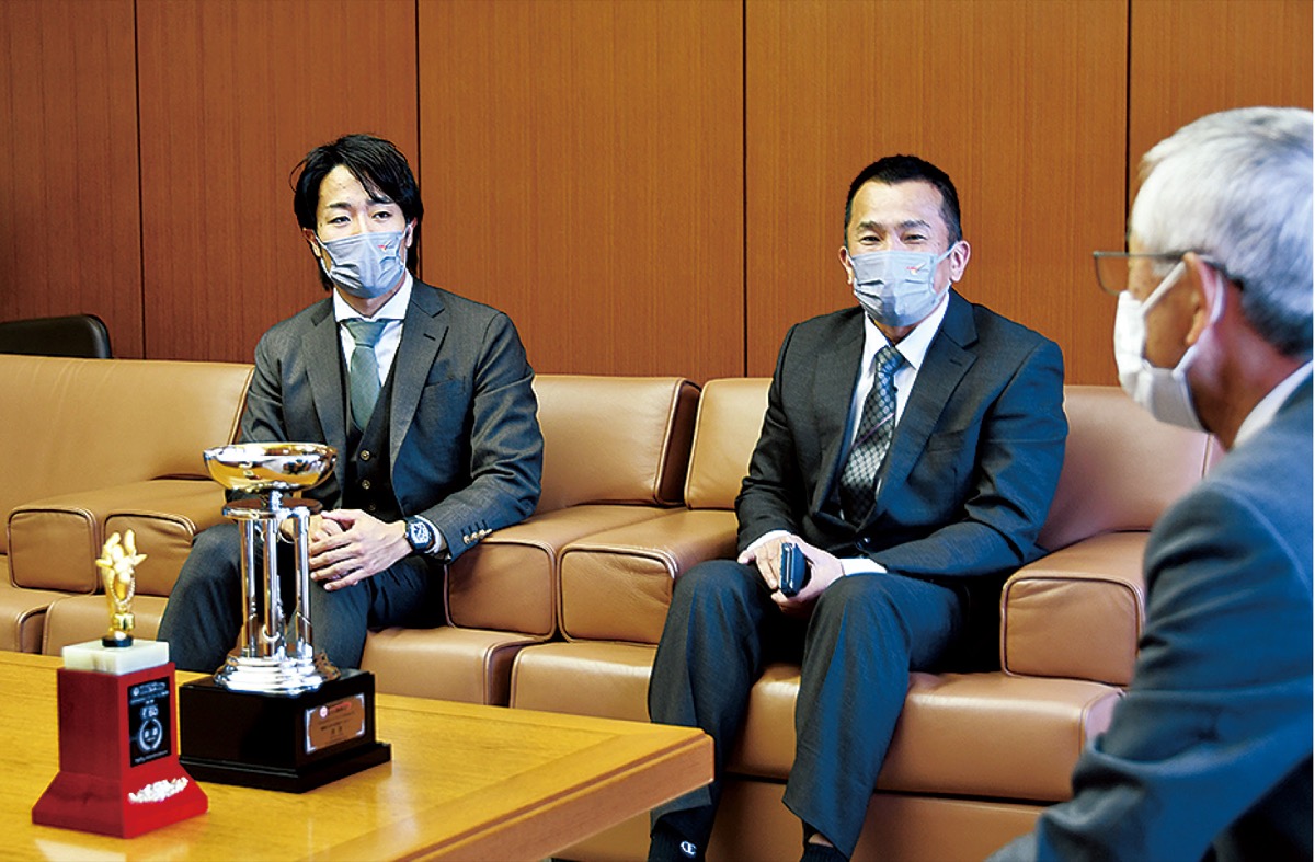 訪問を受けた古塩市長は「ものづくりのまちを掲げる本市を拠点に活動するレーシングチームが国内トップレースで素晴らしい成果をあげたことを誇りに思う」と、関係者を称えていた。