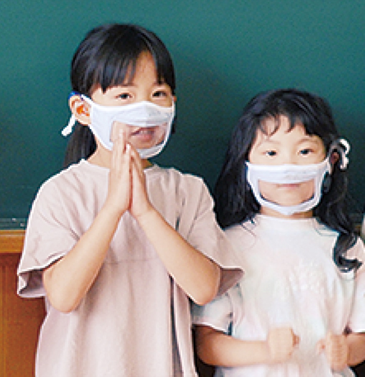 スマイルマスクは口元が透明なフィルムで覆われ、口元が分かりやすいのが特長。同社の吉水智奈美さんは「子どもたちの不安を和らげる一助になれば。今後も要望があれば応えていきたい」と話した。
