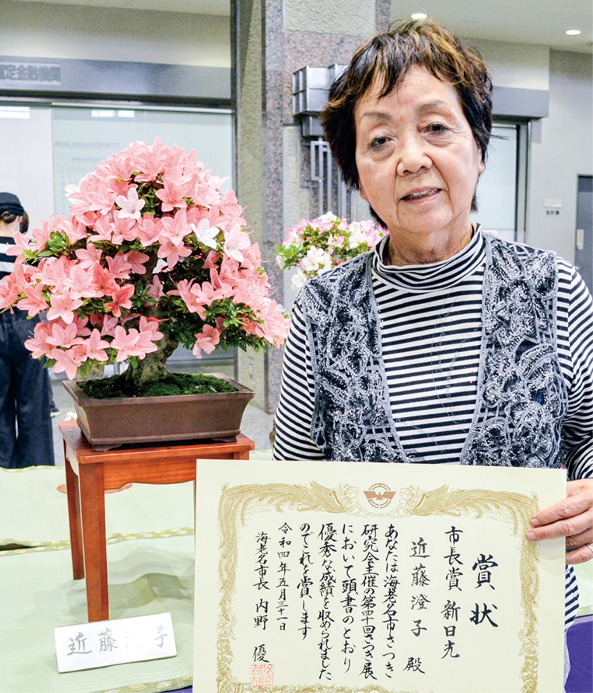 最高賞の市長賞を受賞した近藤澄子さんは「とても嬉しい。全体のバランスがうまくいき、開催のタイミングで見事に咲いた」と喜びを語った。飯田会長も「3年ぶりに開催できてよかった。今後もさつきの普及に努めたい」と話した。