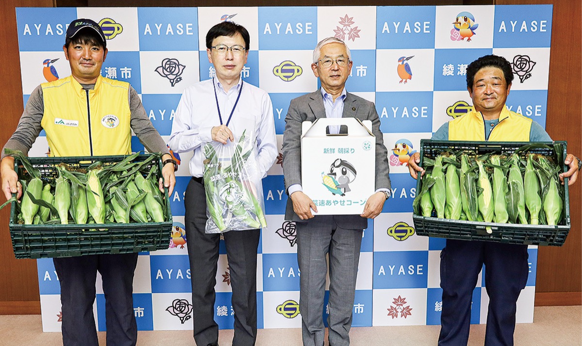 部会では市内農家10人が活動。スイートコーンを2018年に「菜速 あやせコーン」としてブランド化し、合わせて9・8ヘクタールの畑で作付している。6月中旬から始まった出荷は7月下旬ごろにかけて続く予定で、その間、毎日、夜明け前に収穫をはじめ早朝に出荷している。