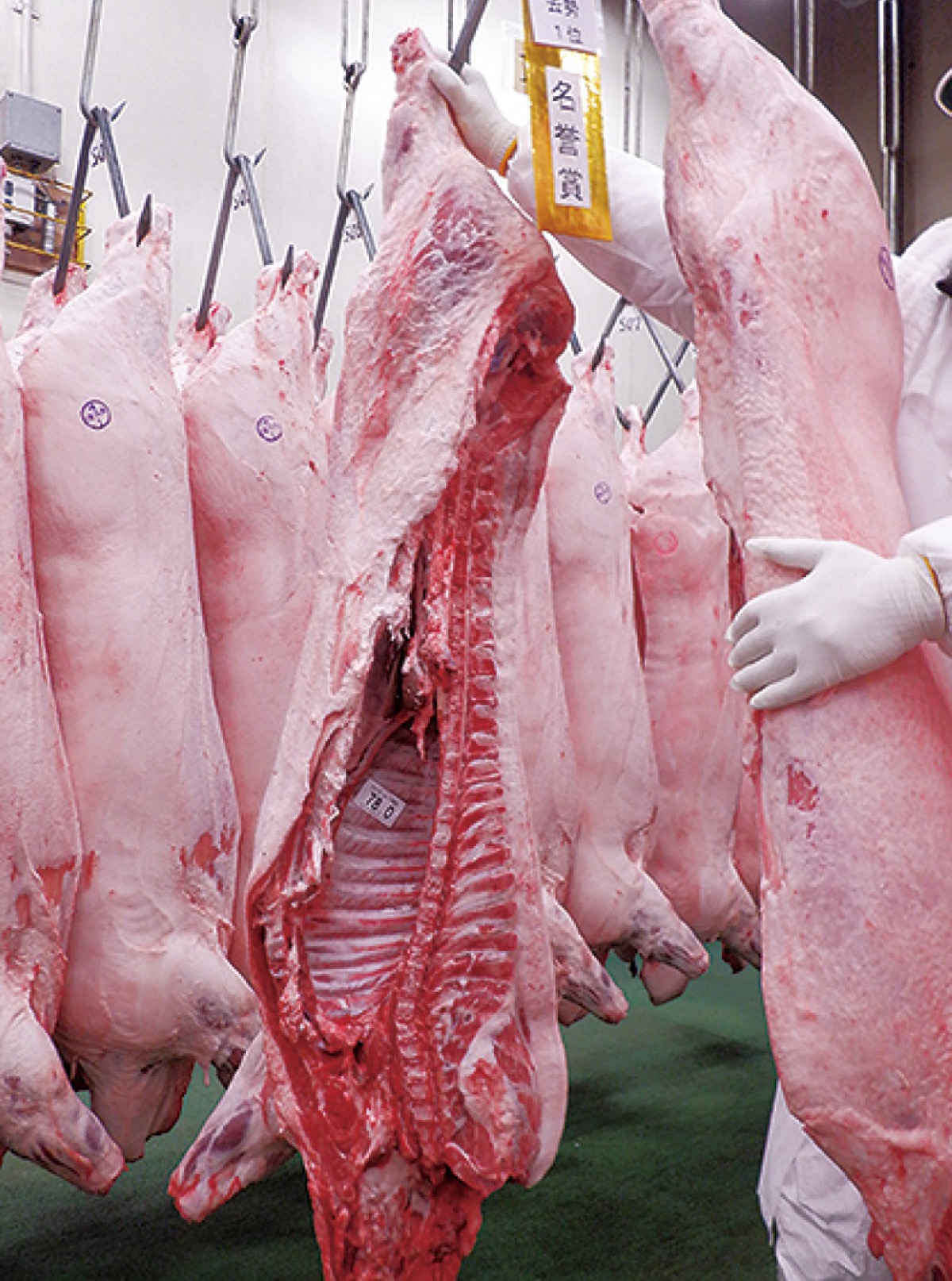 総合1位の名誉賞を獲得した横山養豚綾瀬の横山利佳さんが出品した豚は、枝肉審査で去勢、雌ともに最高ランクの「極上」を獲得した。横山さんは、家族経営の横山養豚(横浜市泉区)で綾瀬市吉岡の養豚場を担当し、常時約700頭を肥育。年間約2千頭を出荷し、横山養豚全体のおよそ4分の1の出荷を担う。千葉県内の関連施設で生まれ、生後25日ほどに育った子豚を綾瀬へ移し、およそ半年間、肥育する。「背が低くて足が短く太い、どこから見ても長方形」の豚づくりが高く評価されている。