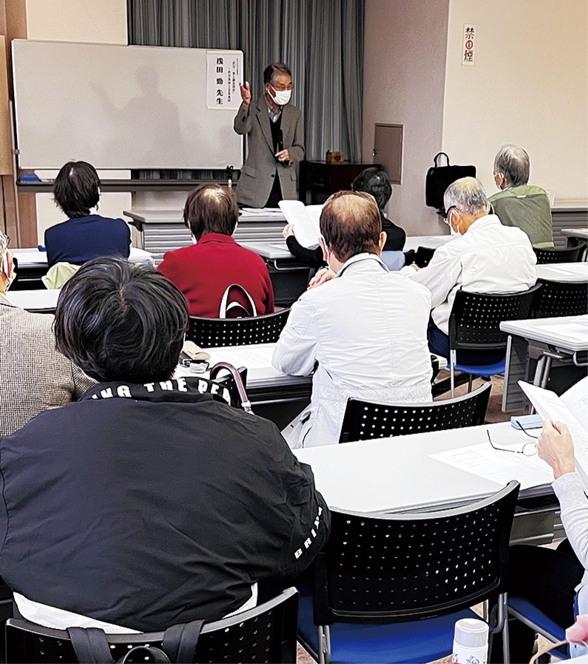 この日は、鎌倉時代の歴史書「吾妻鏡」に登場する渋谷重国や子の高重、時国らの視点をまじえ、鎌倉幕府で繰り広げられた権力闘争について浅田さんが解説した。浅田さんは「綾瀬で生まれ小中学校に通ったが、渋谷一族の話は聴いたことがなかった。50代で赴任した横須賀で初めて渋谷一族を知り、そこから少しずつ学んできた。身近な一族を通して、日本の歴史や社会を学んでくれたら嬉しい」と話した。