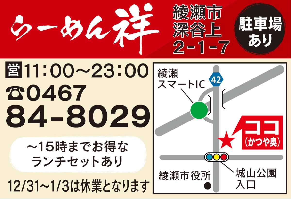 綾瀬市役所そば(旧温野菜)の人気店「らーめん祥」の醤油らーめんが進化を続けている。スープの肝となる出汁の取り方や味の決め手となるタレの濃度など、お客さんの声をもとに少しずつ改良を重ねながら「美味しさ」を追求している。