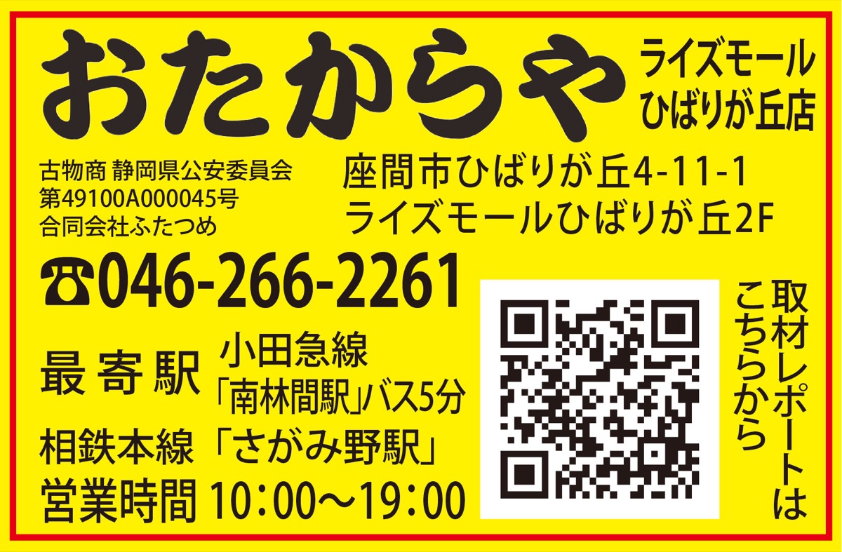 ライズモール座間ひばりが丘2階の「おたからや」では、事前に下記クーポンを提示して同店指定の品物5点以上を成約すると現金1万円を進呈中。さらに、1万円以上の成約時にクーポンを提示すると「防災ボトル」を進呈している。