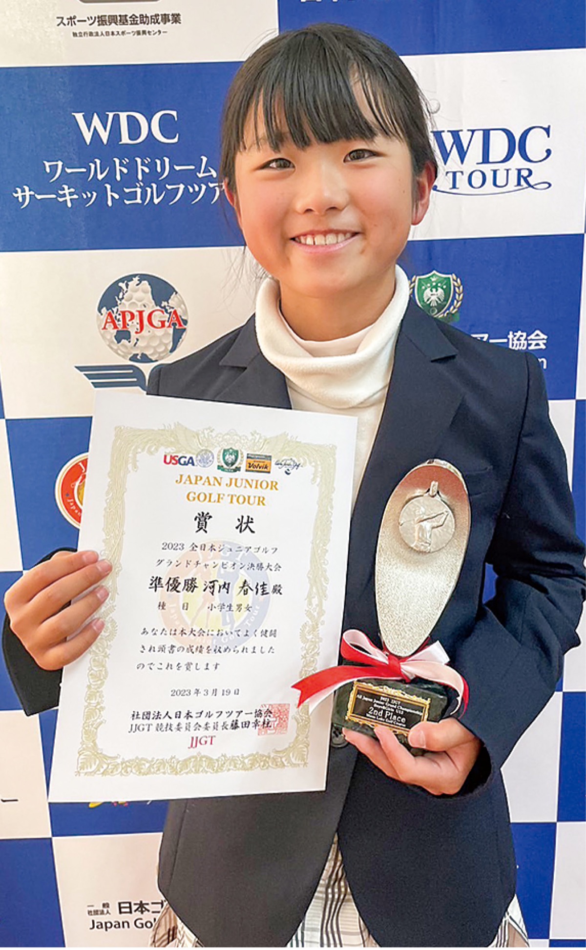 海老名小学校5年の河内春佳さんがこのほど、ムーンレイクゴルフクラブ茂原コース(千葉県)で開かれた全日本ジュニアグランドチャンピオン全国大会の小学生男女の部で準優勝した。